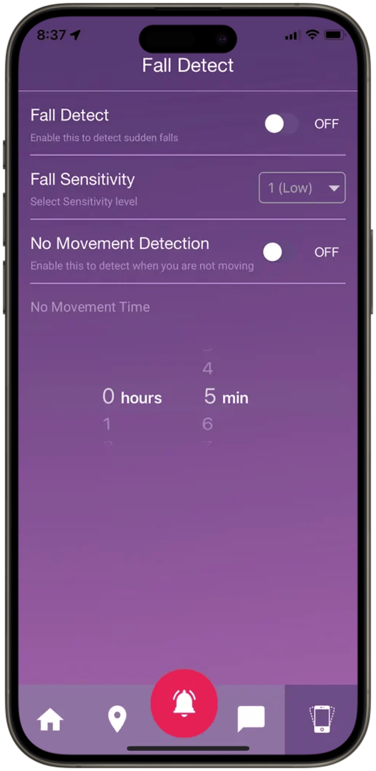 Core Motion for fall/no‑movement detection via accelerometer/gyroscope events.